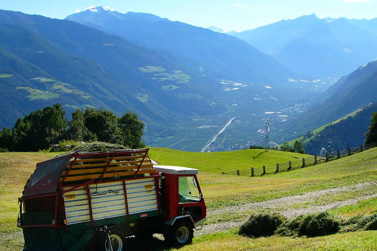 Im Stall stehen im Schnitt 20 – Melkkühe der Rassen Braunvieh sowie Jungrinder und Kälber. Das Jungvieh darf ab Ende Mai auf die Alm und kommt erst um Allerheiligen wieder in den Stall. Die Kühe werden zwei Mal täglich gemolken und gefüttert, um 6.30 Uhr morgens und um 6.30 Uhr abends. Zur Melkzeit dürfen Sie uns gerne in den Stall begleiten und wer möchte kann natürlich mit anpacken. Die Abendmilch wird gekühlt und zusammen mit der Morgenmilch zur Sammelstelle gebracht. Um 10.00 Uhr kommt der Milchlaster und bringt die Milch zum Milchhof „Algunder Sennerei“ . Dort wird sie zu Joghurt, Käse, Ricotta, Butter und anderen leckeren Produkten weiterverarbeitet. Unsere Haustiere sind treue Streicheltiere für Jung und Alt. Wir bitten sie aber stets zu beachten, dass sie Tiere unzuberechnbar sind. Nur eins dürfen unsere Haustiere nicht in die Stube und ins Haus denn draußen gibt es Platz genug. Eier sammeln dürfen gerne alle mit, immer am Nachmittag wo die Hühner auch ins grüne dürfen.