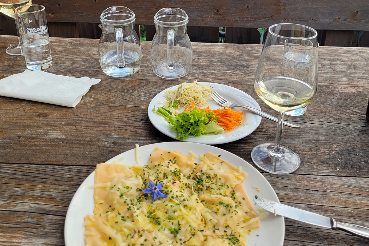 Gerne bereiten wir für sie Kaffee – Tee und Kuchen oder Strudel zu. Am Nachmittag oder auch am Frühen Abend ist es bei uns in den Bergen herrlich von unserem 1000 Jahre alten Bauernhaus den geräucherten Speck und Kaminwurzen mit ein Alm käse und Alm Butter zu genießen bei uns nennt man es Marende, dabei noch ein Glas Milch da spürt man richtig den Bergflair, ein Glas Rotwein und ein Hausgemachtes Brot umrahmt den Genuss.